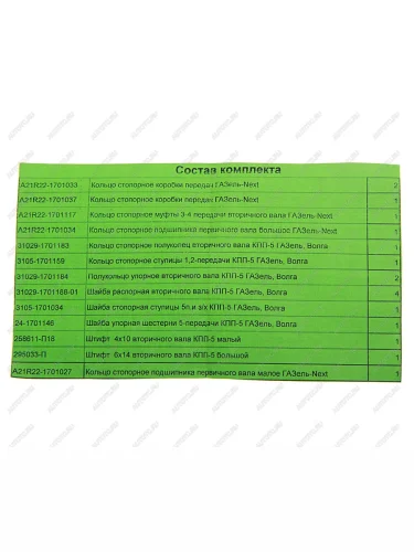 Ремкомплект ГАЗель Next КПП (кольца, шайбы, штифты) до 2015г. СО АВТОРГ АВТОРГ av21r22.170 рк В Йошкар-Оле республике Марий Эл