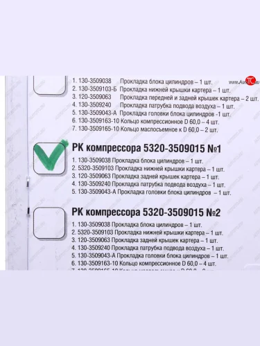 | Наименование | Ремкомплект КАМАЗ компрессора (2 цилиндрового) №1 (прокладки 5шт.) РАКУРС РАКУРС 5320-3509015 №1 рк В Йошкар-Оле республике Марий Эл |