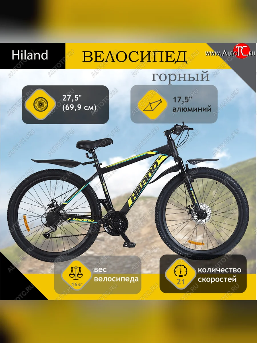 Велосипед 27.5 21-ск. дисковые тормоза (AL-рама) черный Dennis HILAND HILAND t19b218-650 b HILAND t19b218-650 b В Йошкар-Оле республике Марий Эл